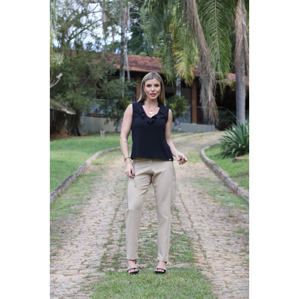 BLUSA DECOTE EM V COM BABADOS - Preto