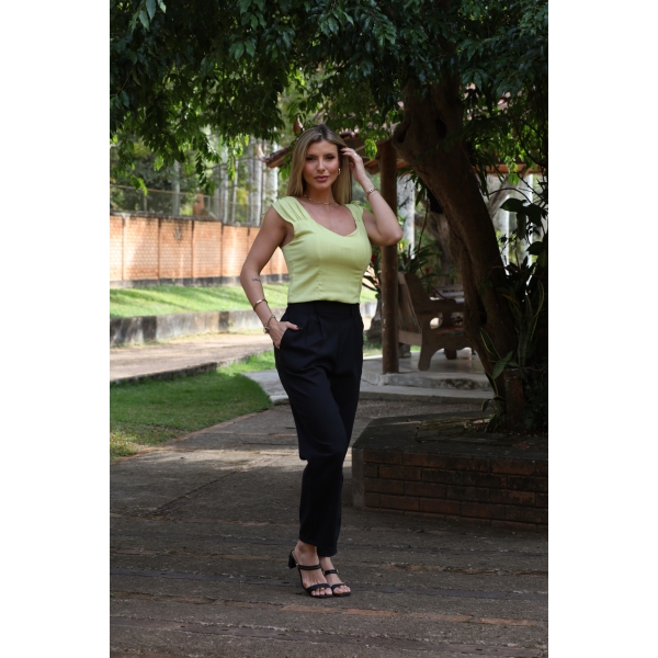 Informações do produto: CALÇA COS LARGO COM BOTÕES NA LATERAL - Preto